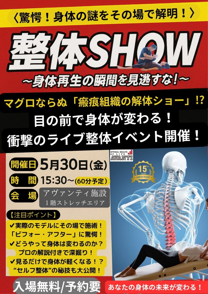 #整体SHOW #身体再生 #ライブ整体 #アヴァンティ #整体イベント #解体ショー #セルフ整体 #身体が軽くなる