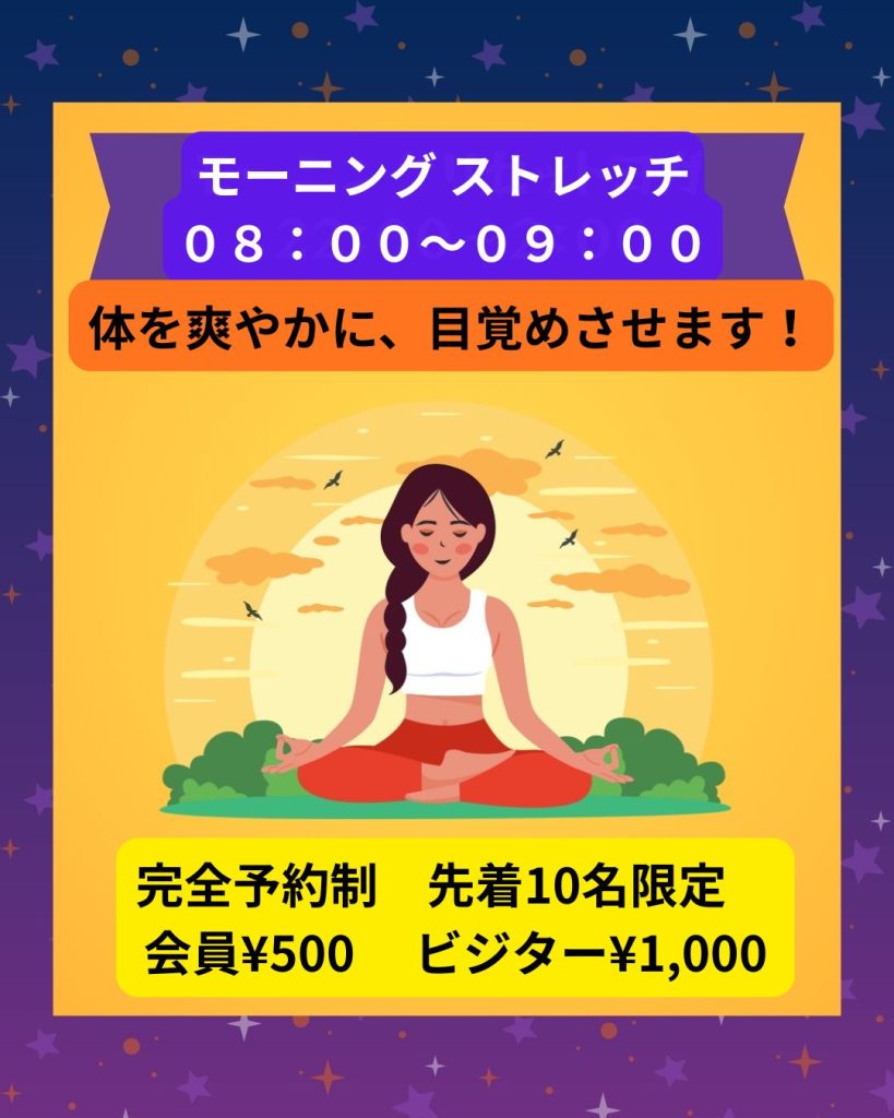 ストレッチポヌルで䜓をゆるめ、朝のリスタヌト。