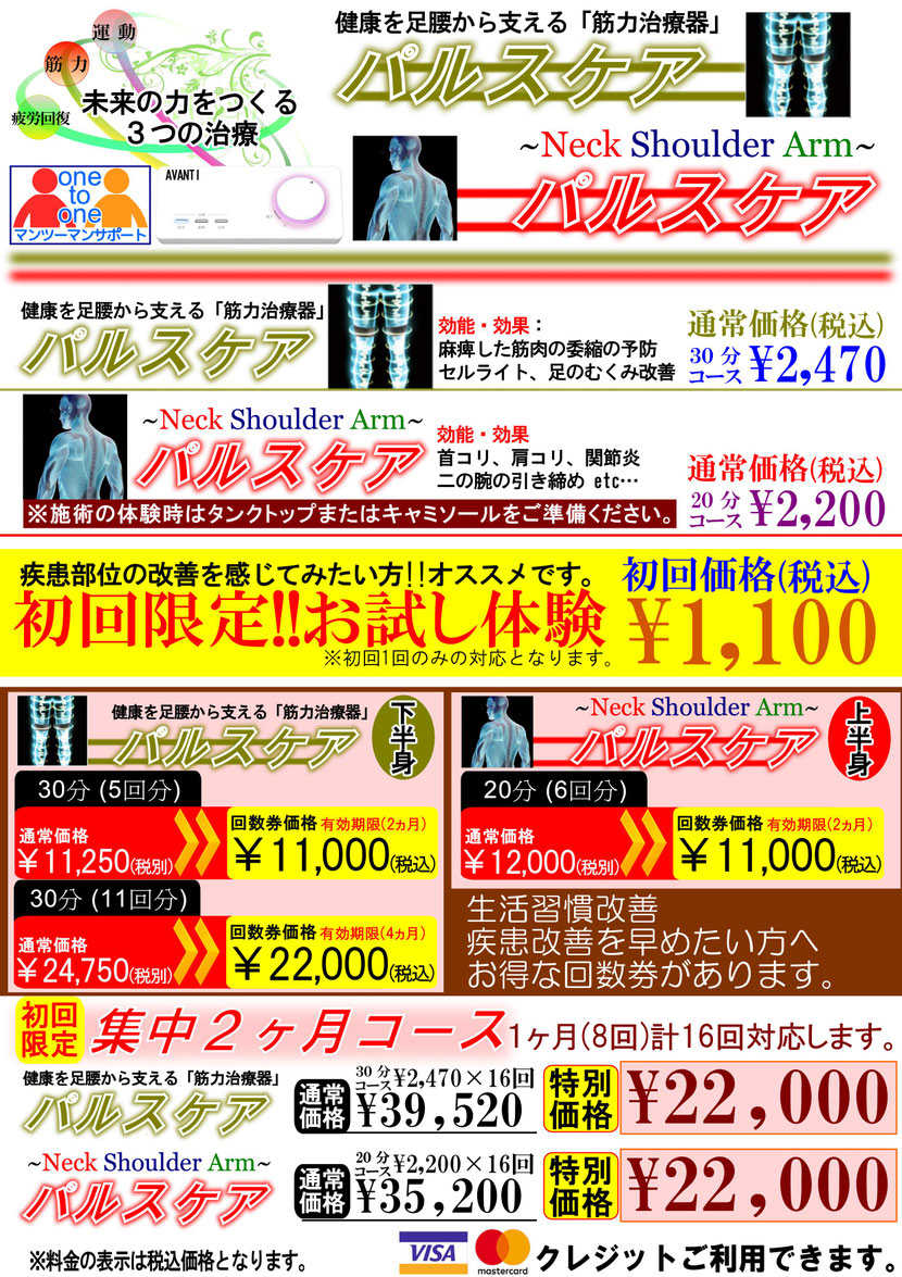 ※パルスケア集中2ヶ月コース契約は別途¥5,000(税抜き)頂きます。